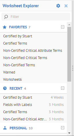 See FAVORITES and / or RECENTLY VIEWED worksheets