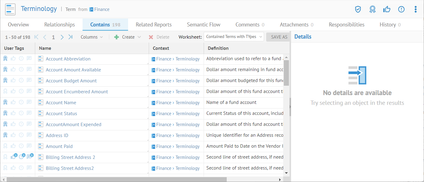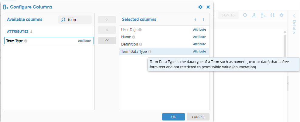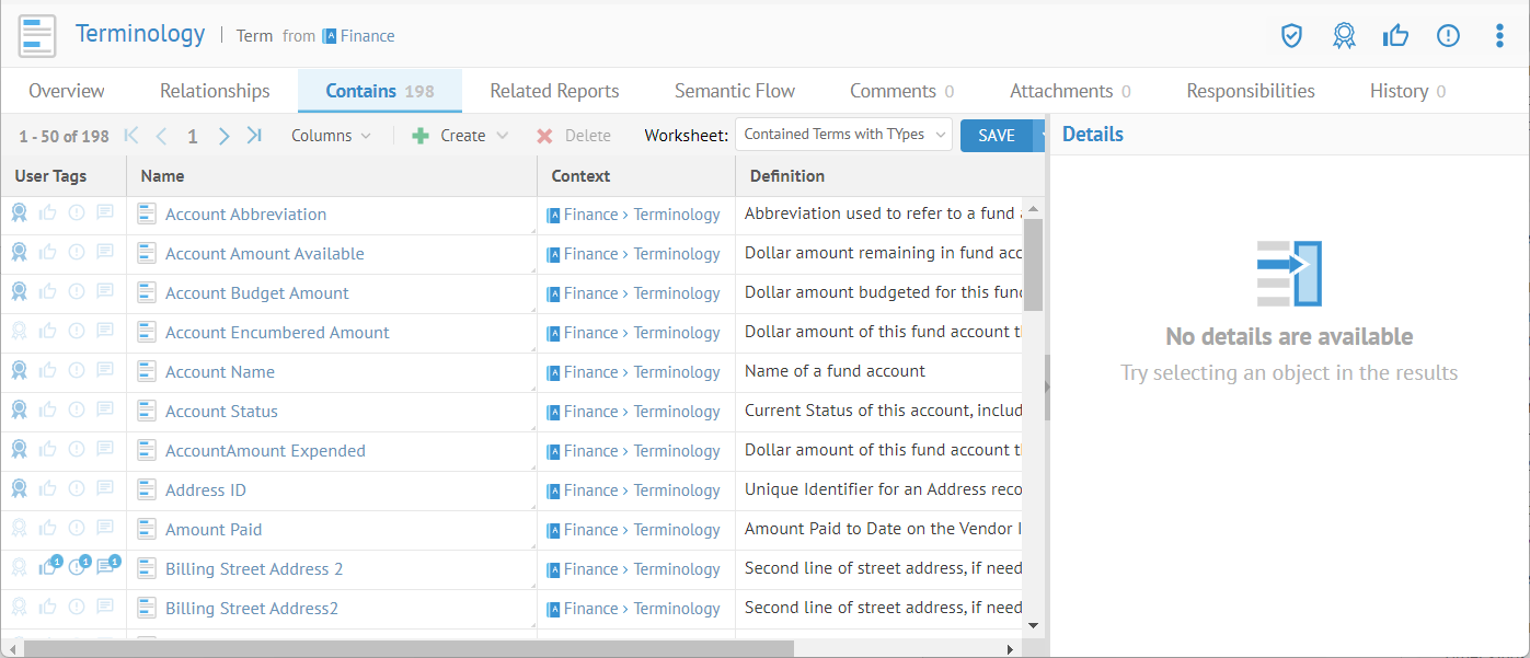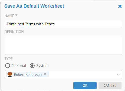 glossary and go to the Contains tab. Include Term Data Type as a column. Click the background to remove the dialog. Click SAVE AS and create a system type worksheet with the below