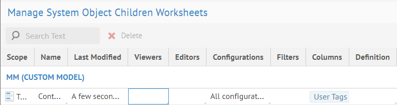 specific (or all) specific configuration assignments. Example Go to WORKSHEETS > Manage and go to the My tab double-click on