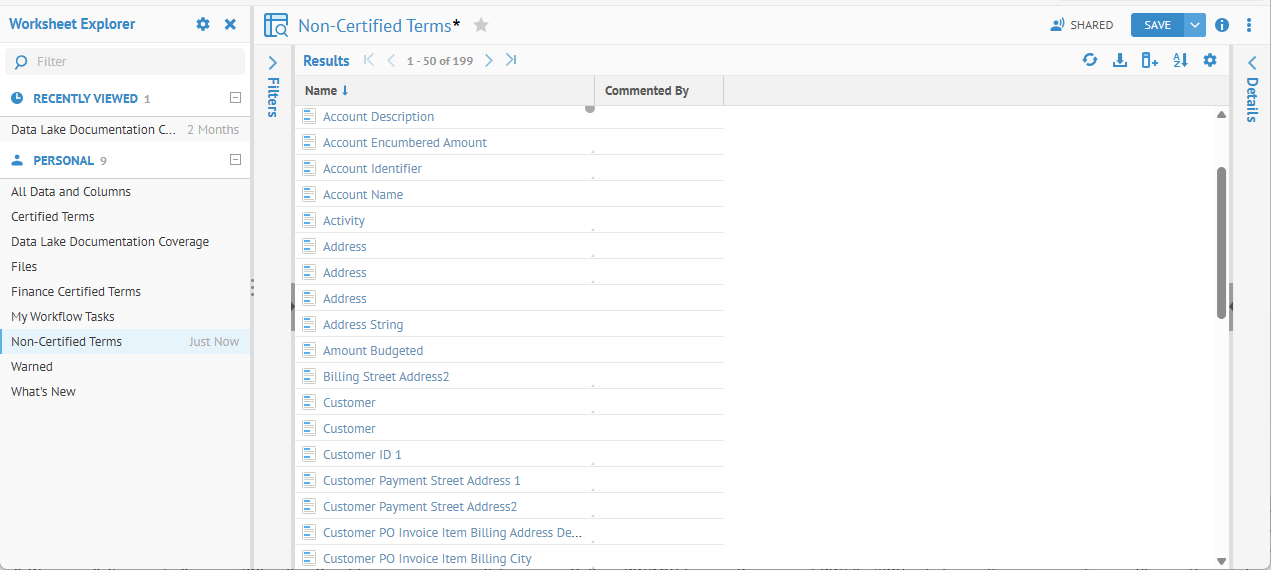 One may save and share worksheets so that other users may quickly reproduce and build on earlier queries/filtering/column selections