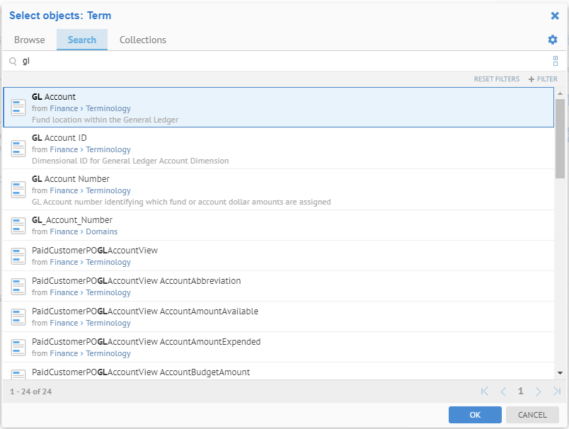 However, that is not because we have not associated this term in the Enterprise glossary with those (more specific) terms in the Finance glossary.