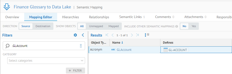 Specify whether to INCLUDE OTHER SEMANTIC MAPPINGS in the list of results. This way you may see already mapped objects even though they are not a part of this semantic mapping. You may not edit them here. Instead, you should edit them from the source or destination object or by going to the other semantic mapping and using the Mapping Editor tab there.