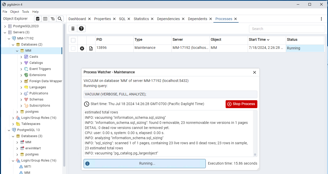 postgresql/binis in the system path. This may take some time if your database is large.reindexdb --username=MM --dbname=MM -v -
