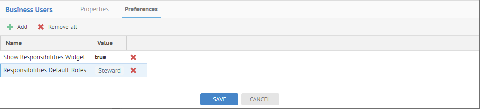 Set the Show Responsibilities Widget to true. Double-click the Value cell for Responsibilities Default Roles and pick Steward.