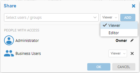 Share a dashboard with Editors who are users and groups of users thus allowing those users to edit this home dashboard