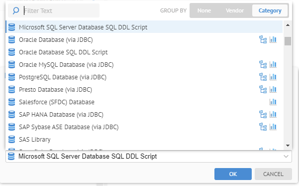 • Drag and drop any other matching model, configuration or glossary into the Target or Source.