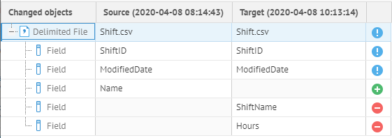 Now, we see the added and removed icons in a more appropriate order, where we added the Hours column as well as renaming Name to ShiftName.