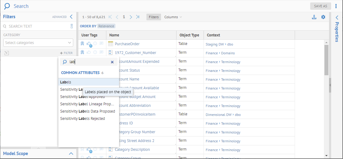 Labels are single word OEMM wide meta tags which may be applied to any object in a Model, then searched on, reviewed and/or managed centrally within a configuration.