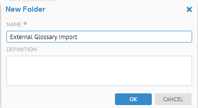 Now, we go to MANAGE > Repository and create the folder which will contain the hierarchy of glossaries that we import.