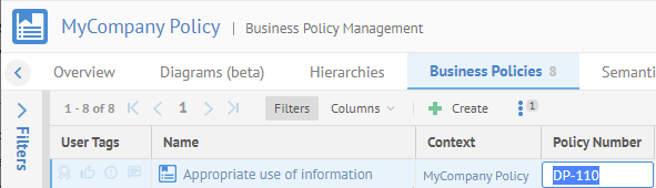 Edit the Policy Number for Appropriate use of information by double-clicking on the cell:
