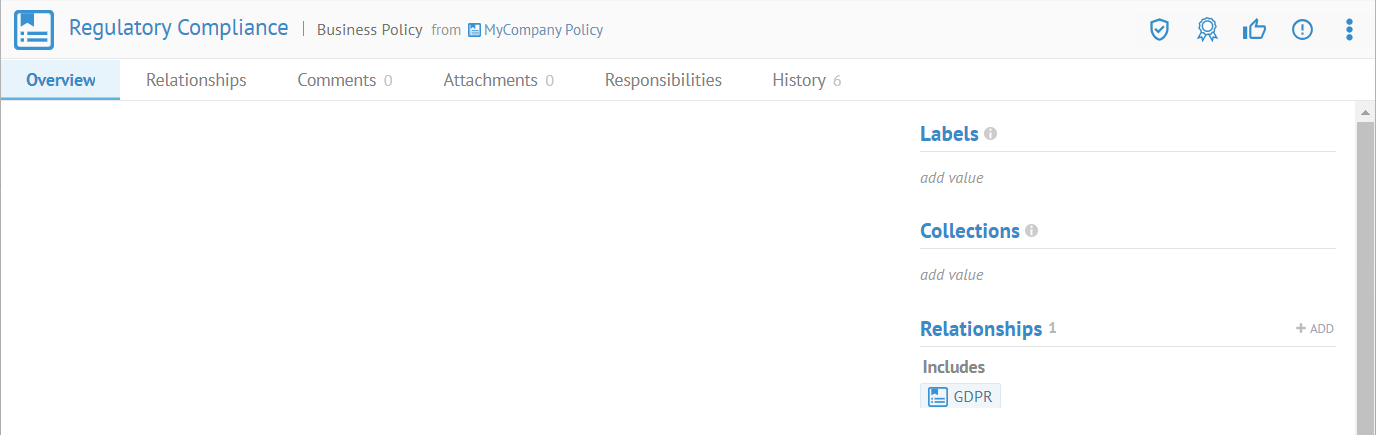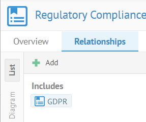 We will also place PII as included within GDPR. So, click GDPR in the Relationships section to open the object page for that business unit.