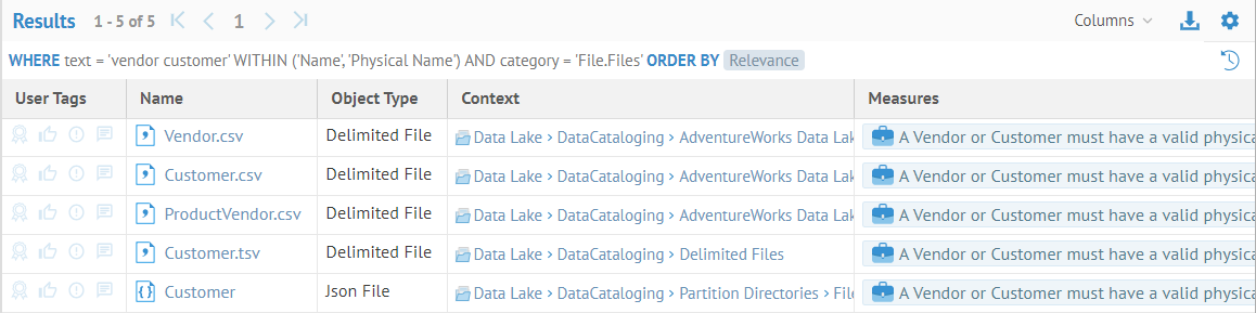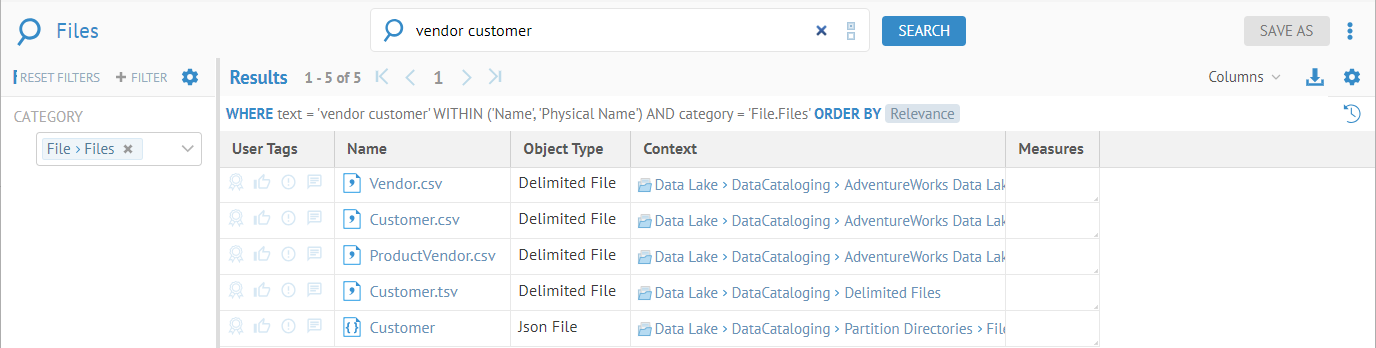 Go to WORKSHEETS > File > Files to produce a worksheet and click on Columns to add the column for the reference Measures. Then add a text filter of "vendor customer".