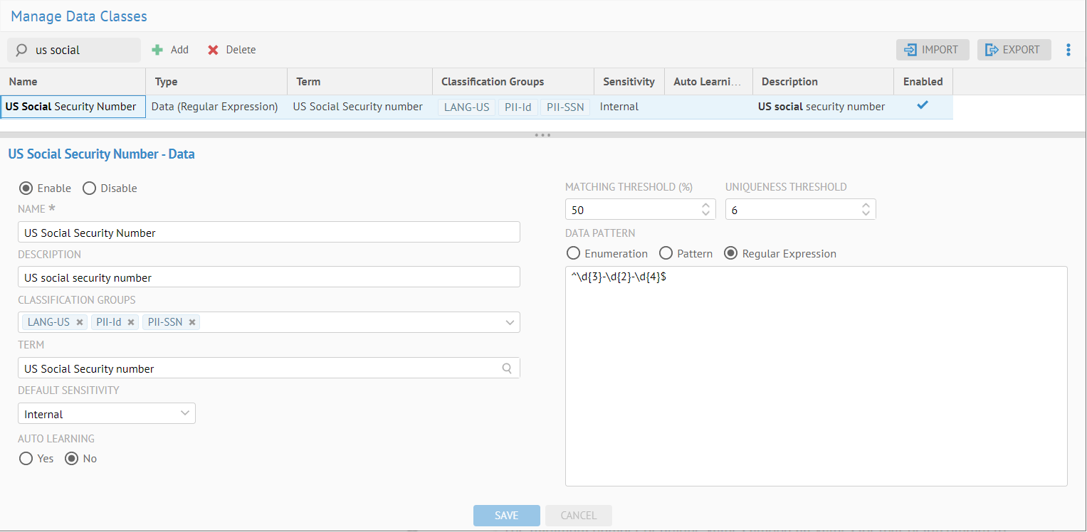 Data Classification. Again select PII-SSN for the CLASSIFICATION GROUP and click OK**.