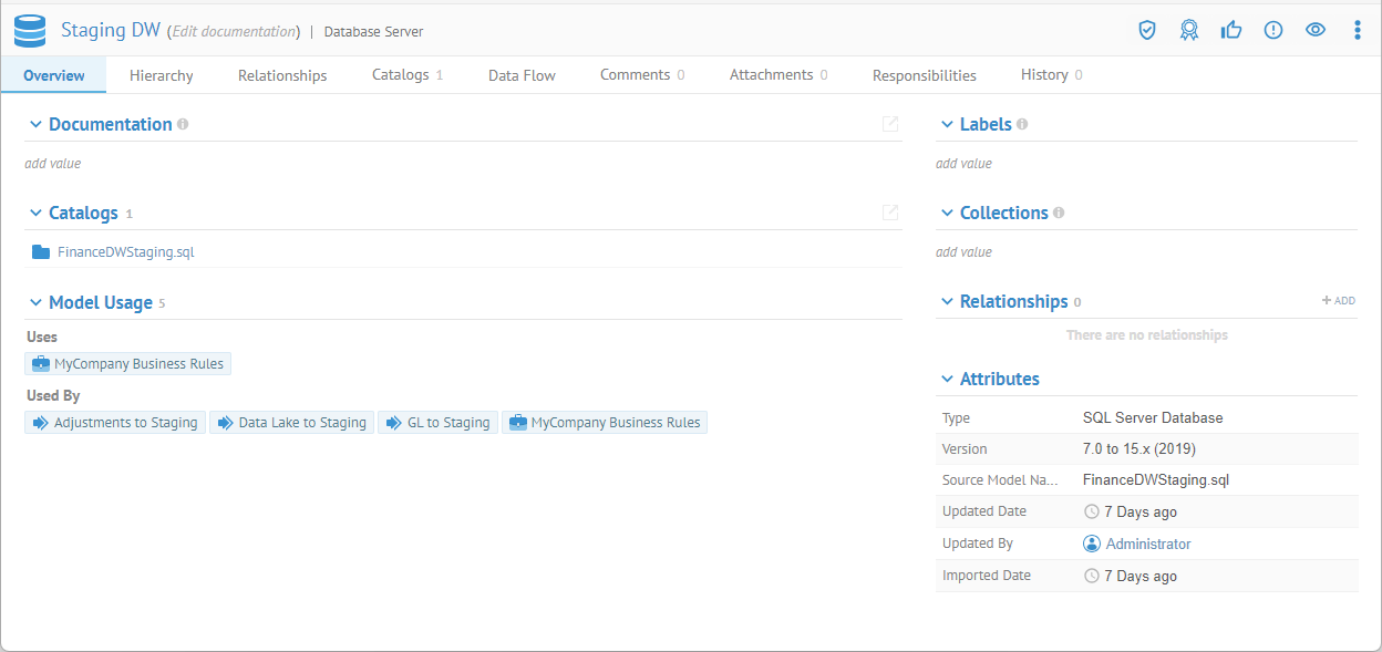 The data documentation process of imported models is a critical part of any data catalog. Any imported object (e.g. tables/files, columns/fields) comes with a physical name which needs documentation with at user friendly (logical) name and description which are now better presented and managed in 4 types: