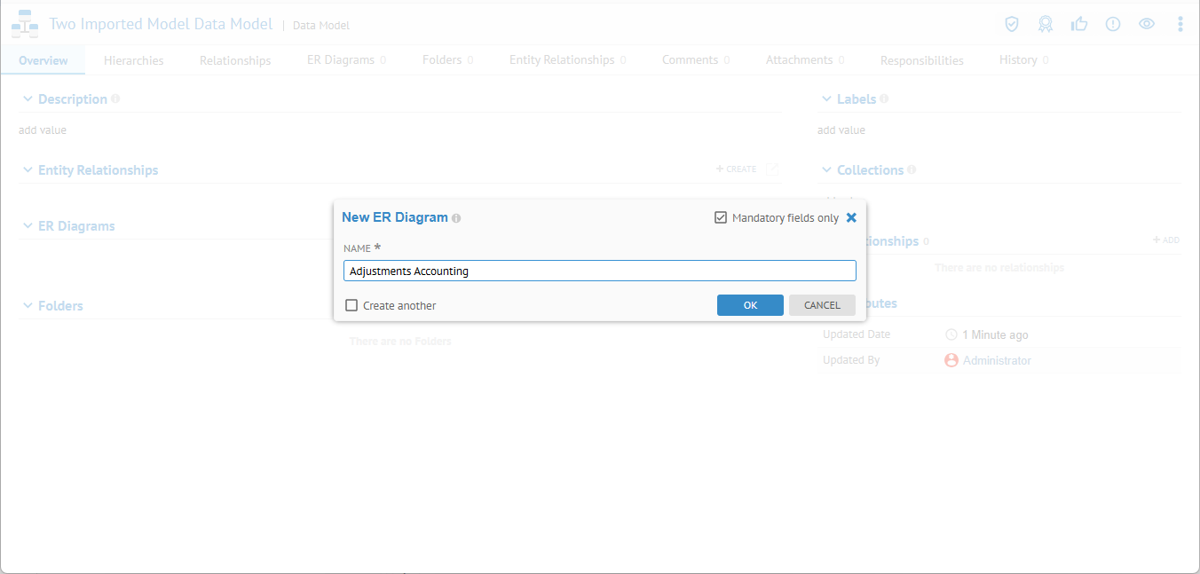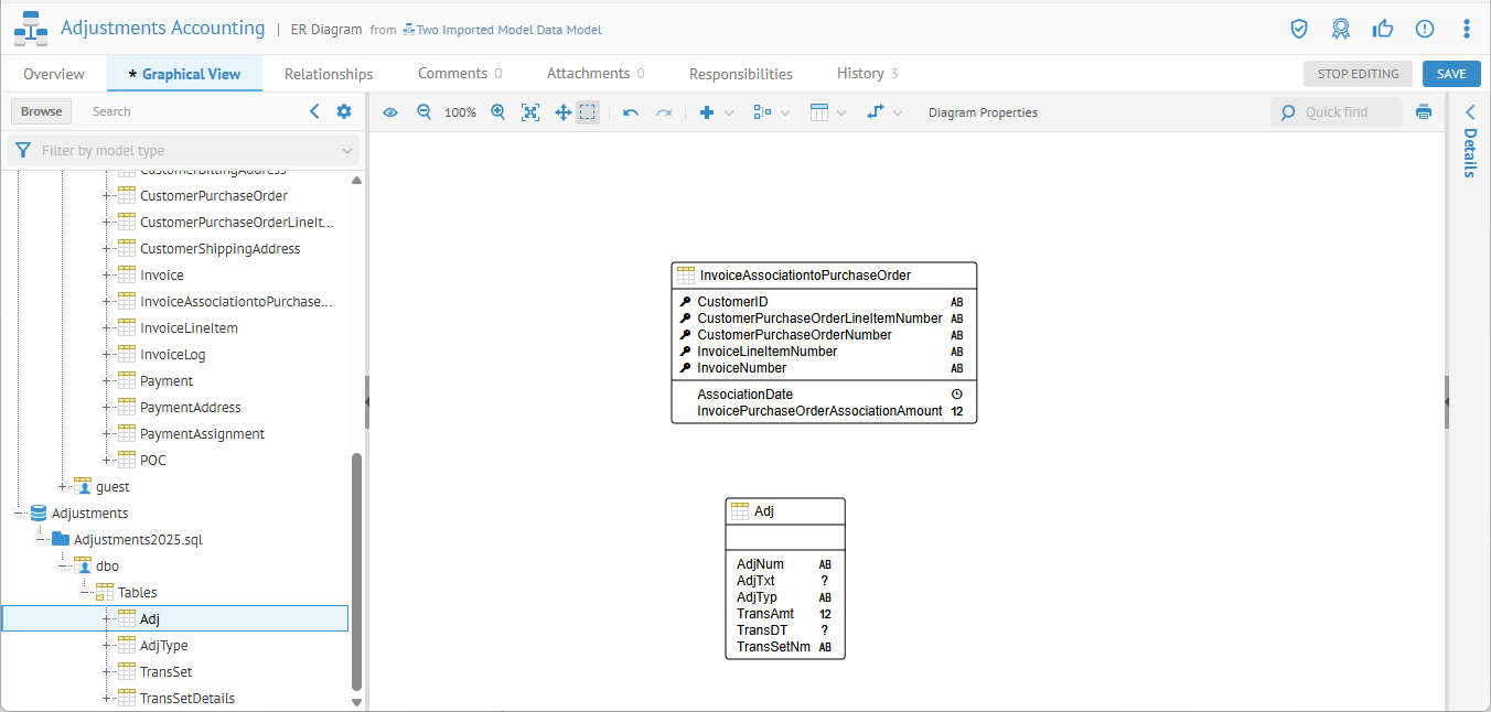 OPEN the data model and create a new ER Diagram named "Adjustments Accounting".