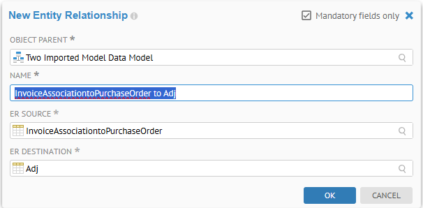 Click +CREATE in the Entity Relationships section and enter "Entity Relationship Pool" in the NAME and click OK.