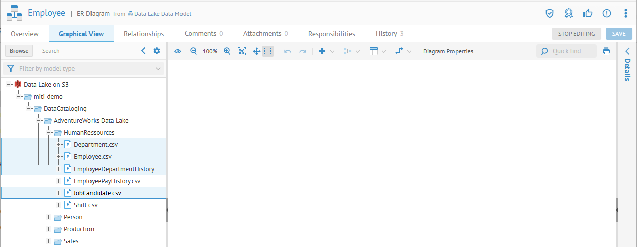 Navigate to the object page for the Staging DW database model and click the ER Diagrams tab.