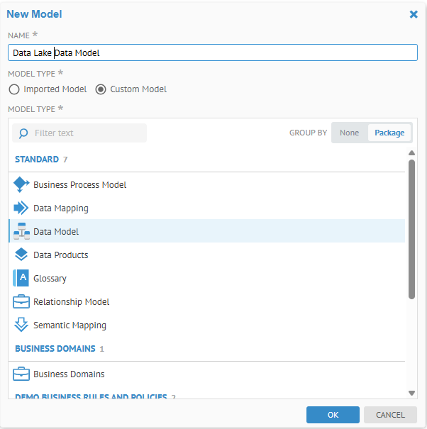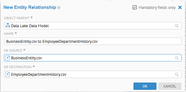 Pick the Data Lake Data Model as the place to put the entity relationship being created.