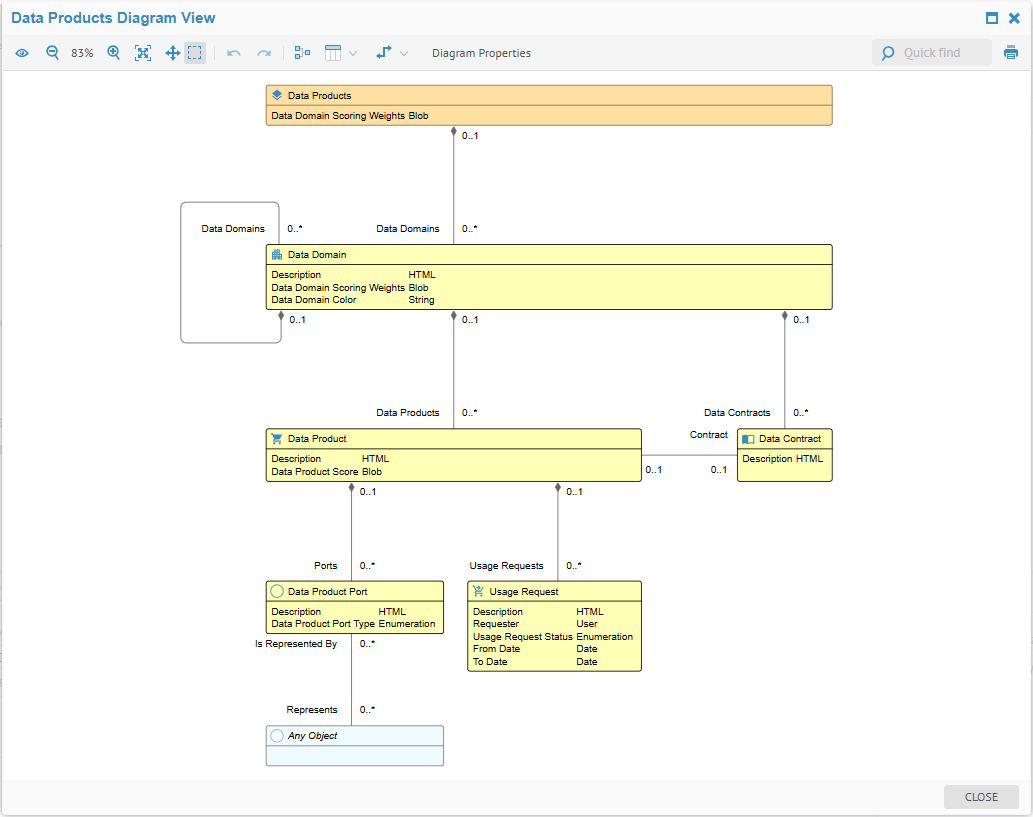 - A data products model may contain one or more data domains, and these data domains have a hierarchical structure with a particular data products model.
