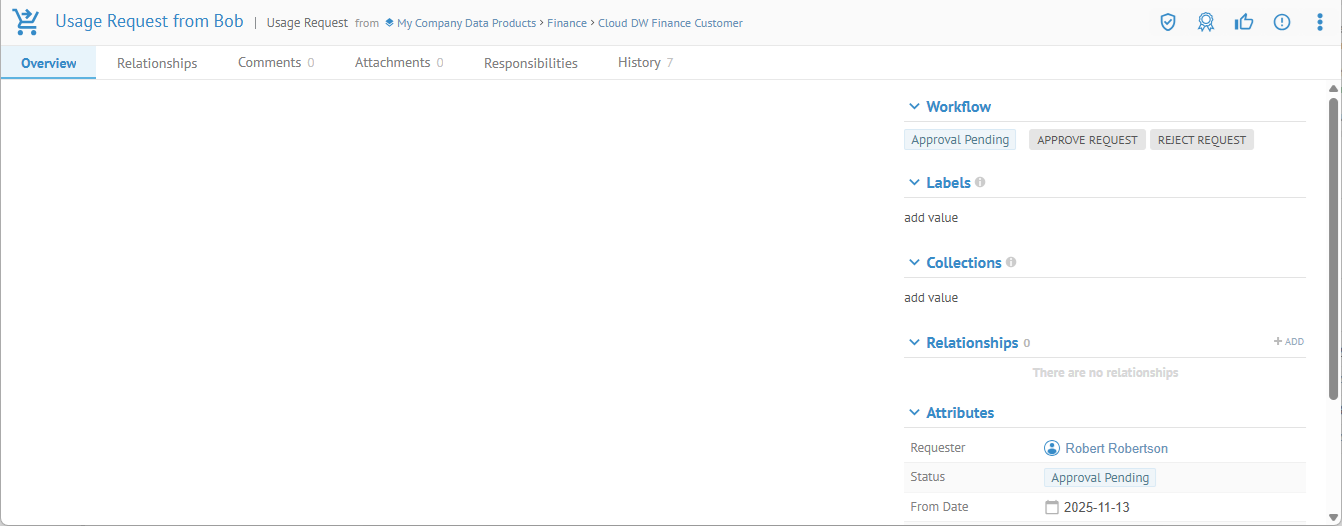- Navigate to the Data Domain and Data Product to which the request was made.