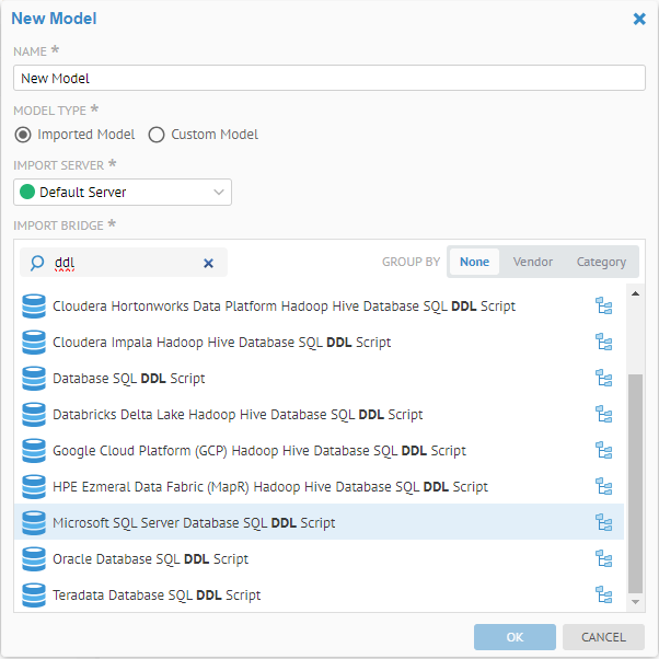Choose the Microsoft SQL Server Database SQL DDL bridge.