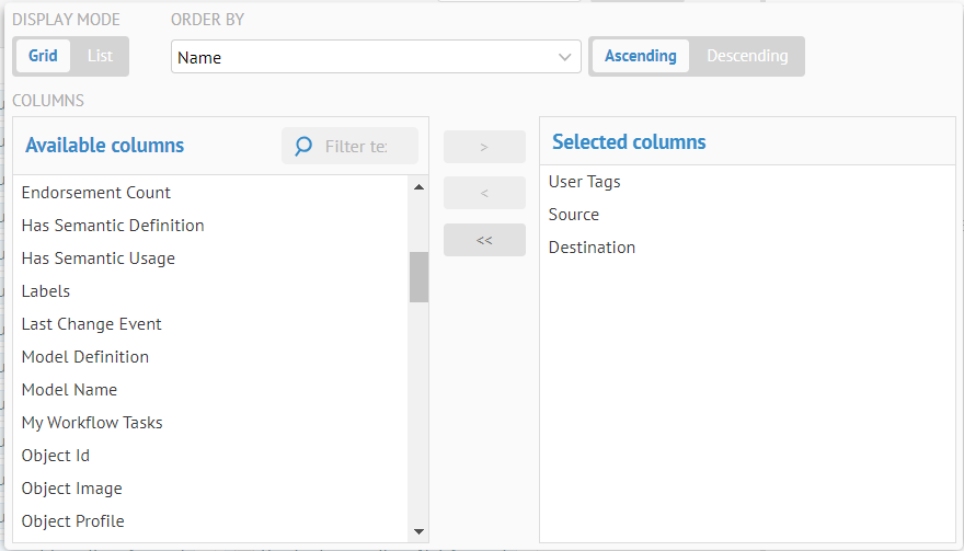 You may add or remove columns and change the sort order of the displayed links.