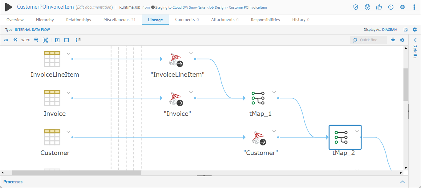 Click on the Lineage tab and zoom in on the Invoice table where it is joined with Customer