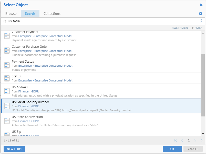 Click on the term US Social Security Number(first line). Go to the Lineage tab. Click Usage in the upper right.