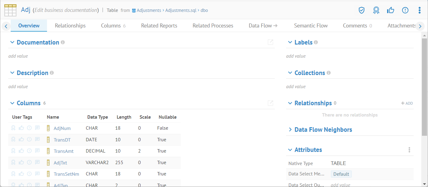 Navigate to the object page of the Adj table.