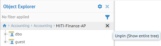 Go to OBJECTS > Explore. Navigate to the MITI-Finance-AP level in the tree and right-click the object and select Pin in Tree.