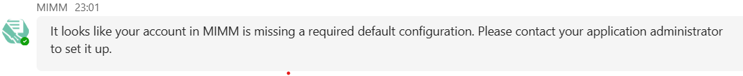 If the user is found but it does not have a default configuration in any attached group, the bot will return another error message for the search request: