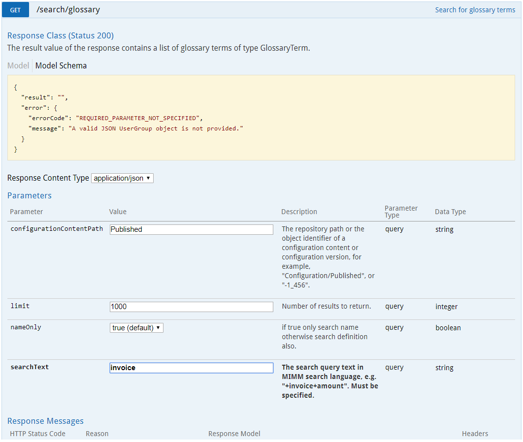/MMGlossaryClient/. This demo assumes a server URL located at "http://localhost: ", and a glossary in a configuration called "Published". REST API application developers are familiar with the above documentation, and can find the demo source code in Chrome > top right menu > More tools > Developer tools.
