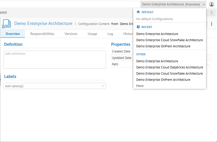 Right-click the Demo Enterprise Architecture > Published configuration version and select Switch to this configuration.