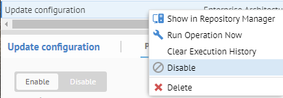 One may also manually apply the Update configuration version operation to a specific version of a configuration by selecting the specific version in the Repository Manager. However, this operation may not be scheduled.