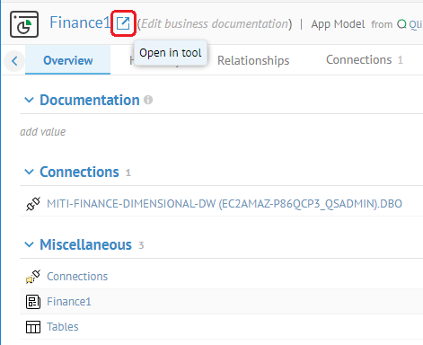 First the Administrator must setup the Qlik Sense Server URL and Enable it in the Open in Tool tab of the Qlik Sense model within Manage > Repository or Manage > Configuration: