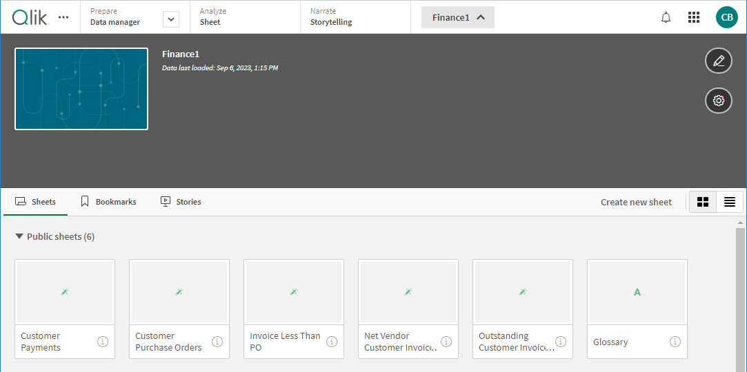 which opens that sheet in the app on the Qlik Sense server as follows:
